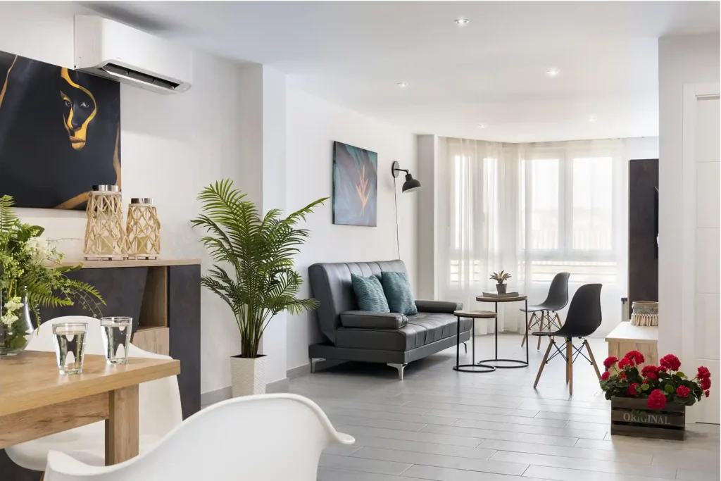 - Servicios Aire acondicionado, Aparcamiento, Apartamento privado en edificio, Armario, Artículos de aseo gratis, Ascensor, Baño privado, Calefacción, , Canales por cable, Ducha, Enchufe cerca de la cama, Entrada privada, Escritorio, Español, Habitaciones comunicadas disponibles, Habitaciones insonorizadas, Inglés, Insonorización, Internet, Lavadora, Mesa de comedor, Microondas, Nevera, Papel higiénico, Perchero, Productos de limpieza, Prohibido fumar en todo el alojamiento, Proporciona factura, Registro de entrada y salida exprés, Ropa de cama, Secador de pelo, Sofá, Suelo de madera o parquet, Tetera / cafetera, , Tostadora, TV, TV de pantalla plana, Utensilios de cocina, Vitroceramica, WC, Zona de cocina, Zona de comedor, Zona de estar